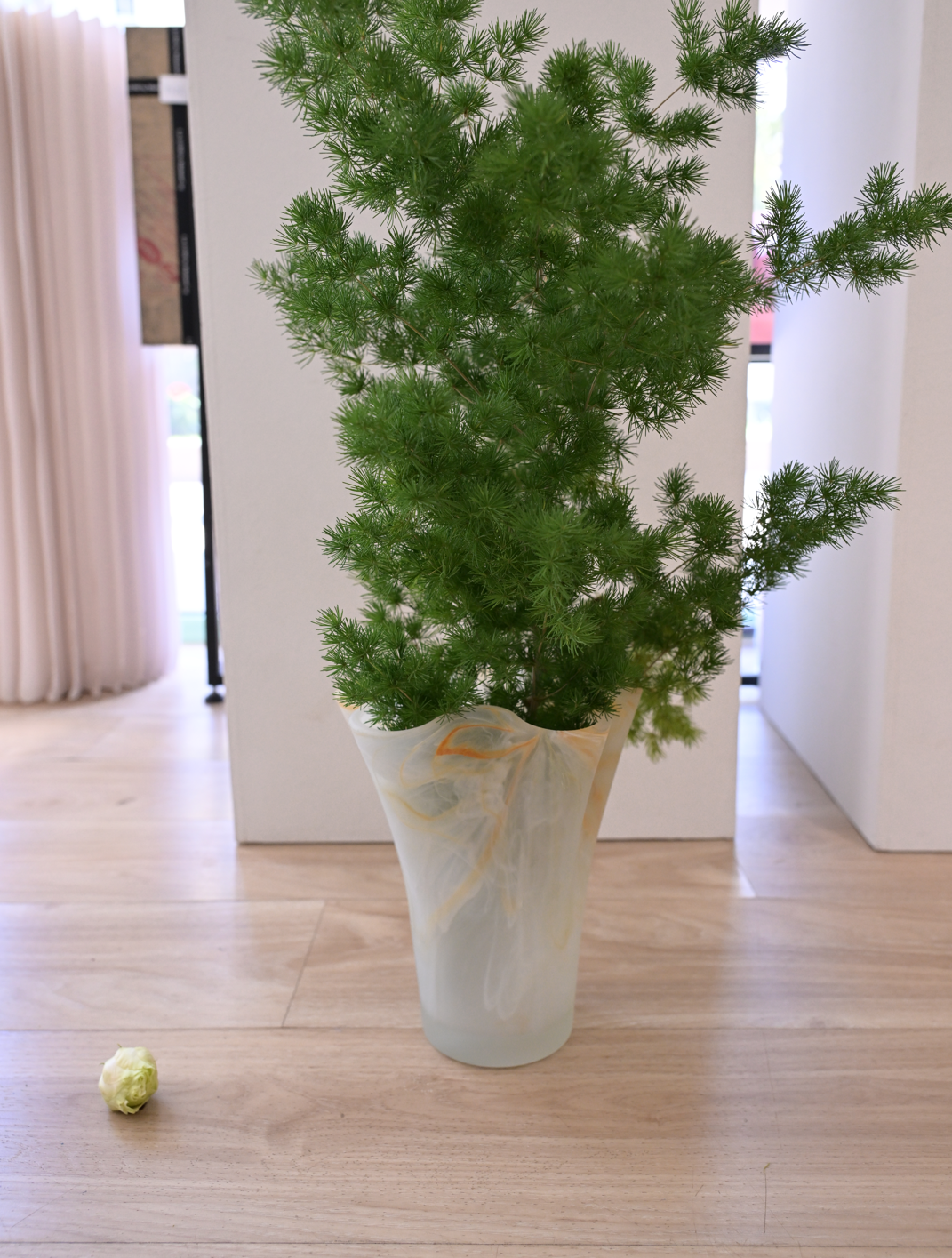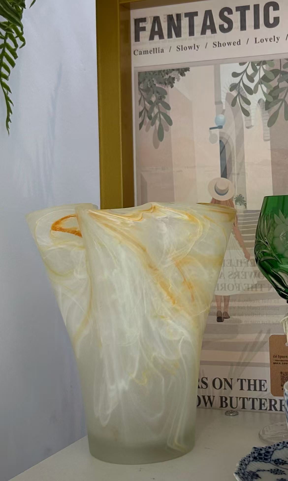 More than just a vessel, this opal-hued petal vase is a true work of art. Featuring a flowing, wave-like silhouette inspired by blooming petals, its form is both organic and sculptural. The surface shimmers with marble-like veining, giving the vase a sense of depth, movement, and quiet luxury.