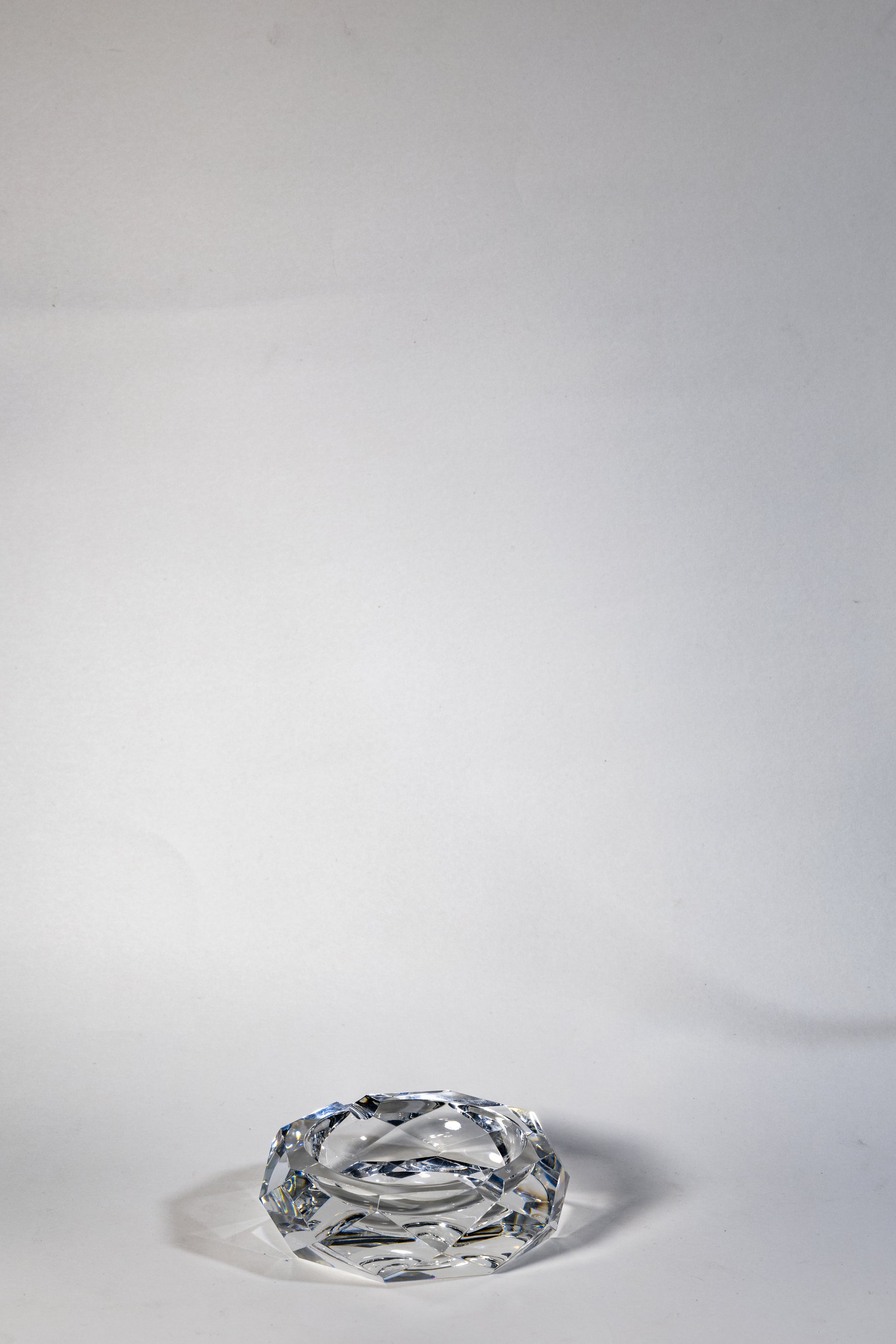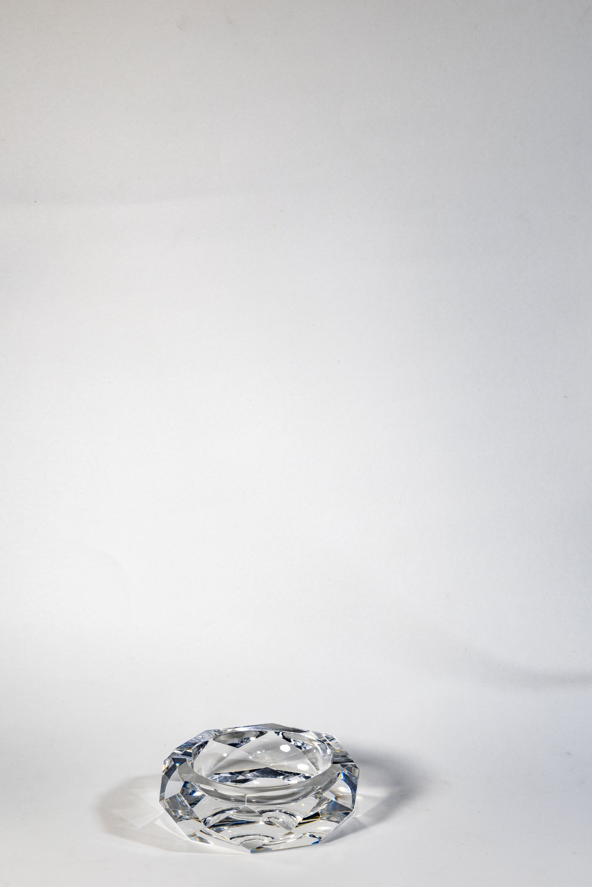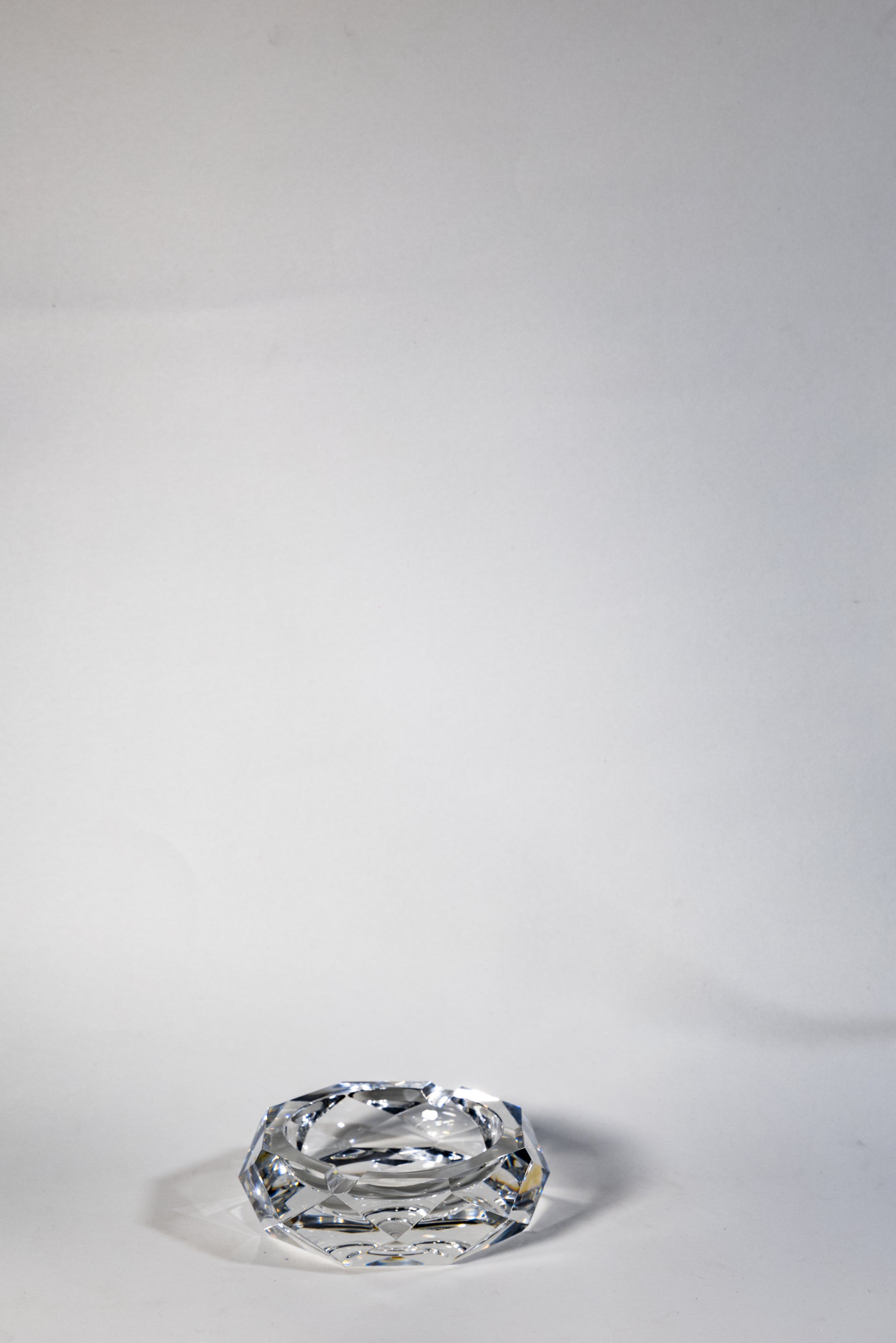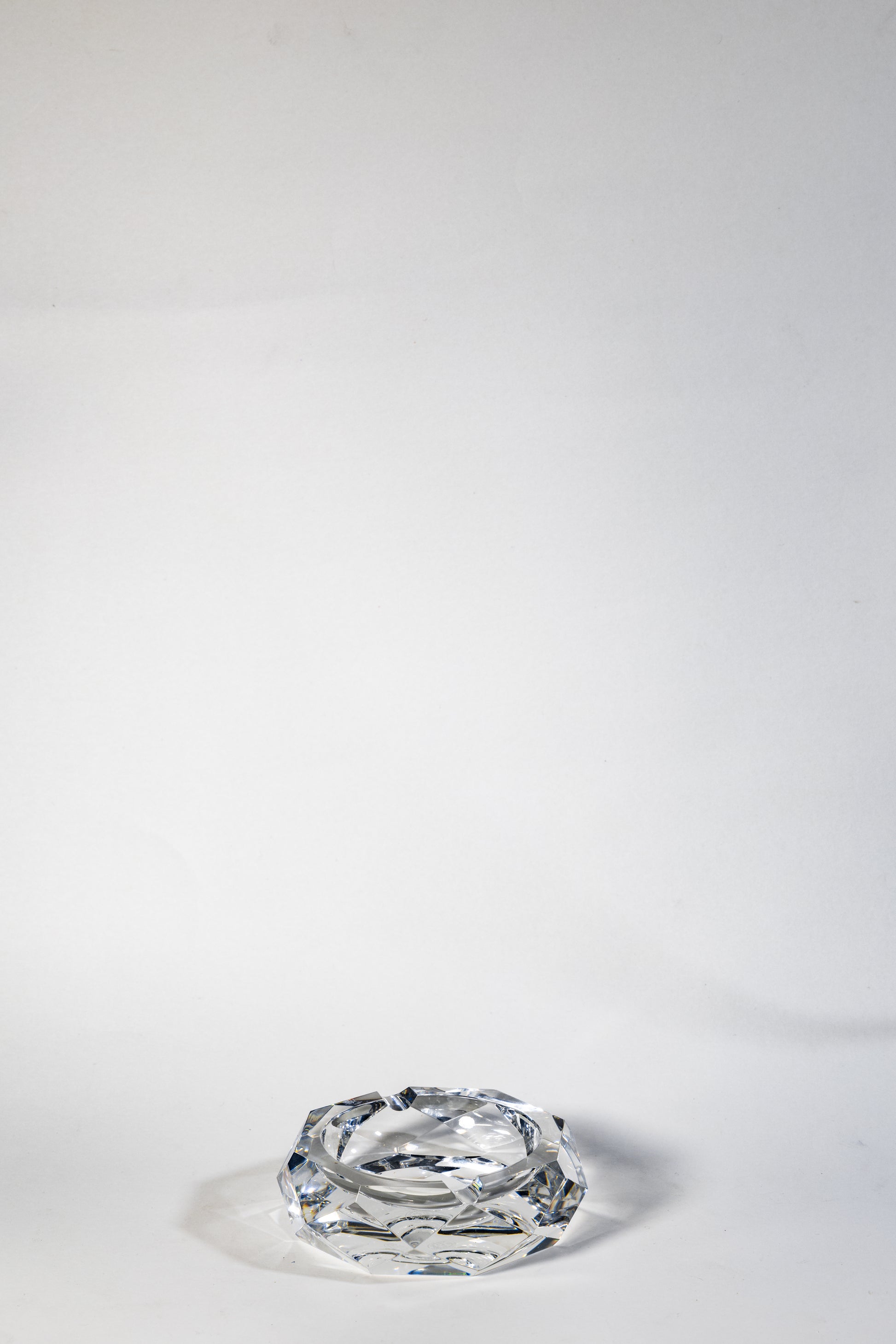 This stunning hand-cut crystal ashtray by Baccarat, France’s most iconic crystal house, is a remarkable fusion of modern geometry and classic luxury. Designed with sharp, interlocking facets reminiscent of a crystalline bird’s nest, the form plays masterfully with light—creating dramatic reflections and depth from every angle.