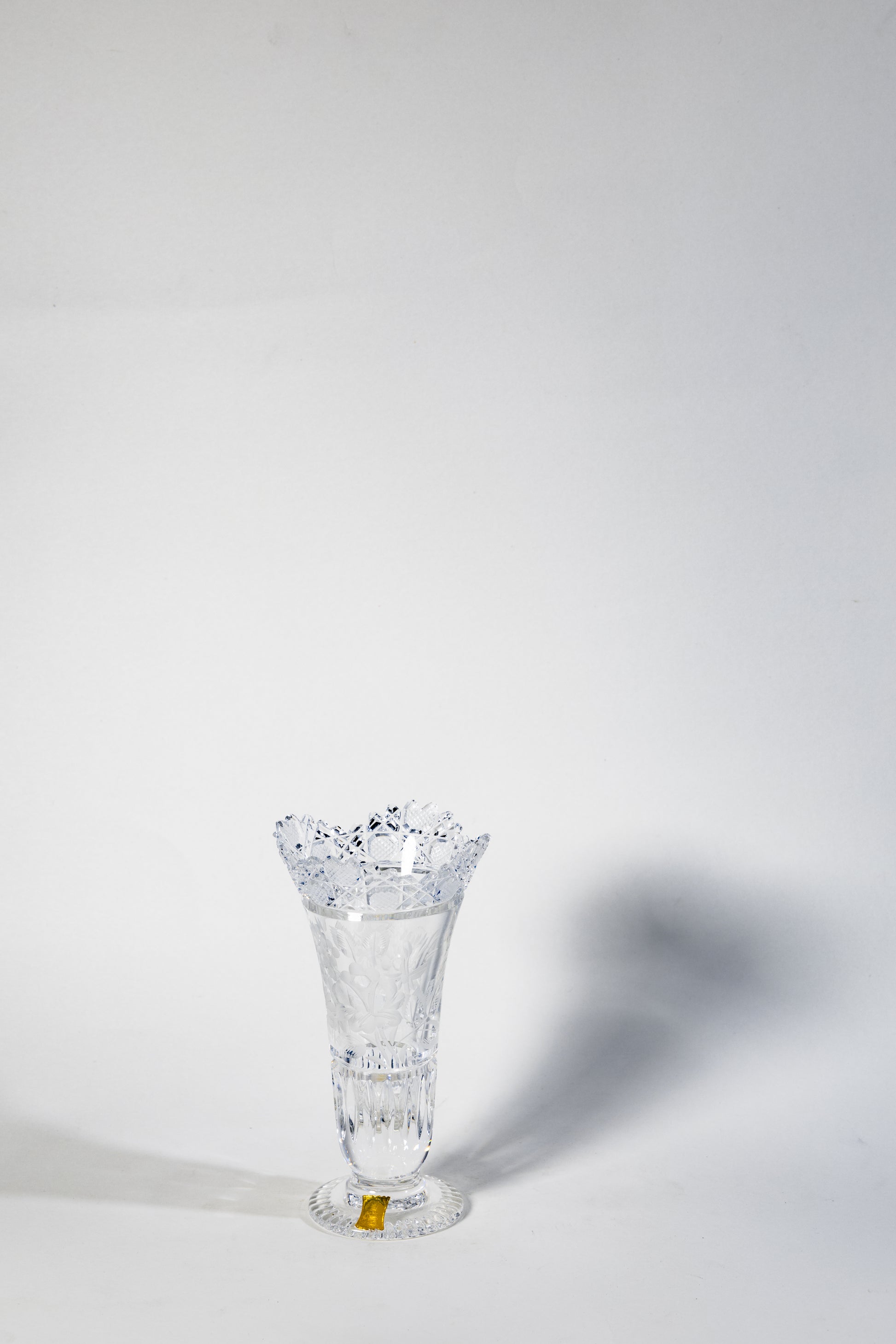 Its exceptional clarity and brilliance allow light to dance across every facet, enhancing the intricate floral pattern. The vase retains its original Meissen label, adding provenance and collectible value to an already distinguished piece.