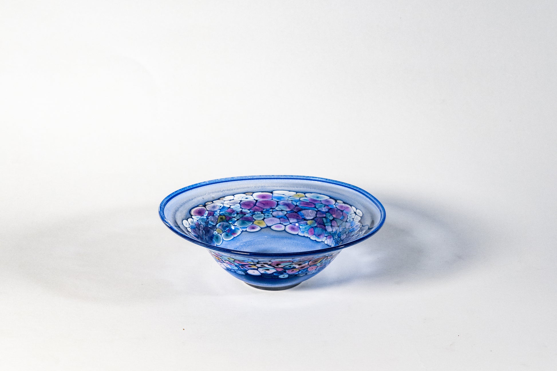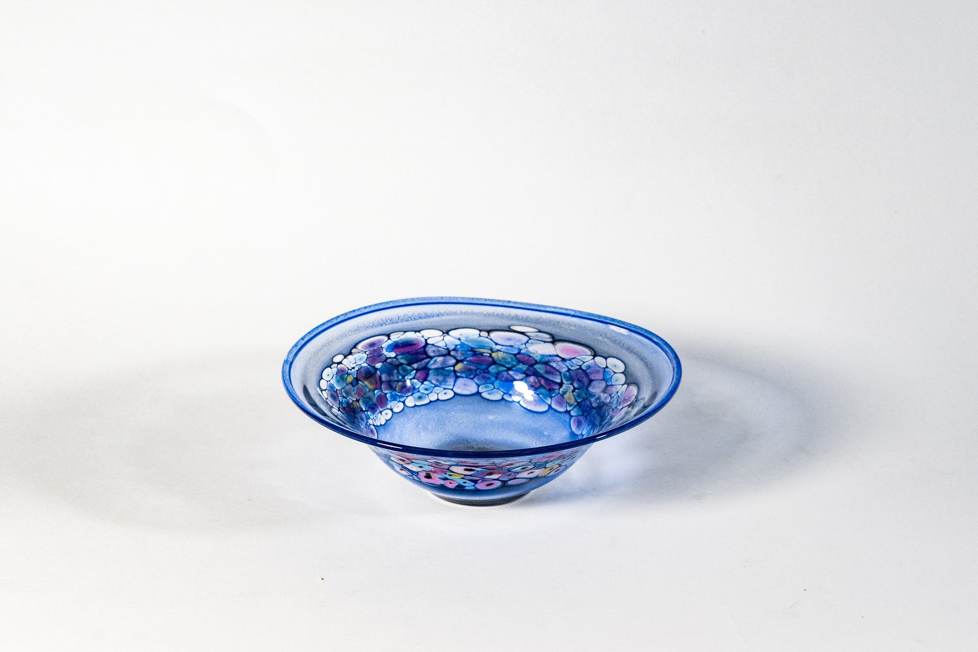 The interior shimmers like a garden captured beneath clear Venetian waters, while the soft transparency of the glass lends it a dreamlike luminosity. Elegant yet joyful, “Azure Blossom” embodies the timeless Venetian spirit — colorful, fluid, and impossibly refined.