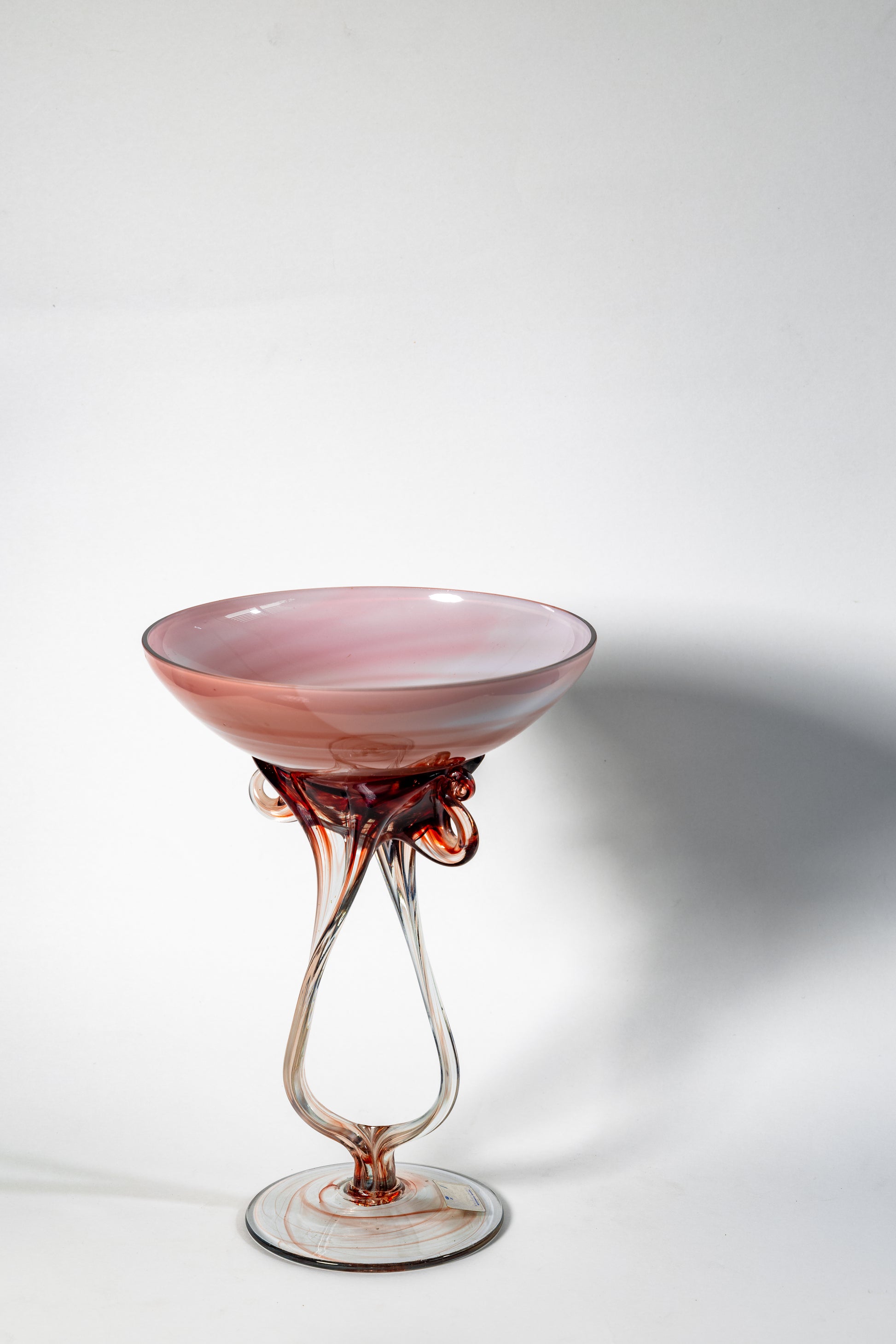 Designed as a candleholder, the chalice casts a delicate, shimmering glow, reflecting the curves and hues of its sculptural form. The art piece captures the refined craftsmanship of Bavarian glassmakers, where light, motion, and emotion merge into a timeless accent.
